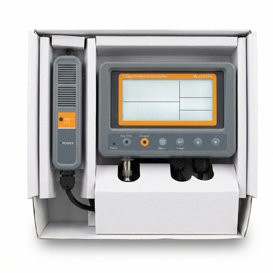 חיישן חיצוני ייעודי: המערכת כוללת חיישן CO2 חיצוני המחובר בכבל, המאפשר ניטור בתוך חלל הגידול הסגור בזמן שהצג והבקרה נמצאים מחוצה לו לנוחות מקסימלית.