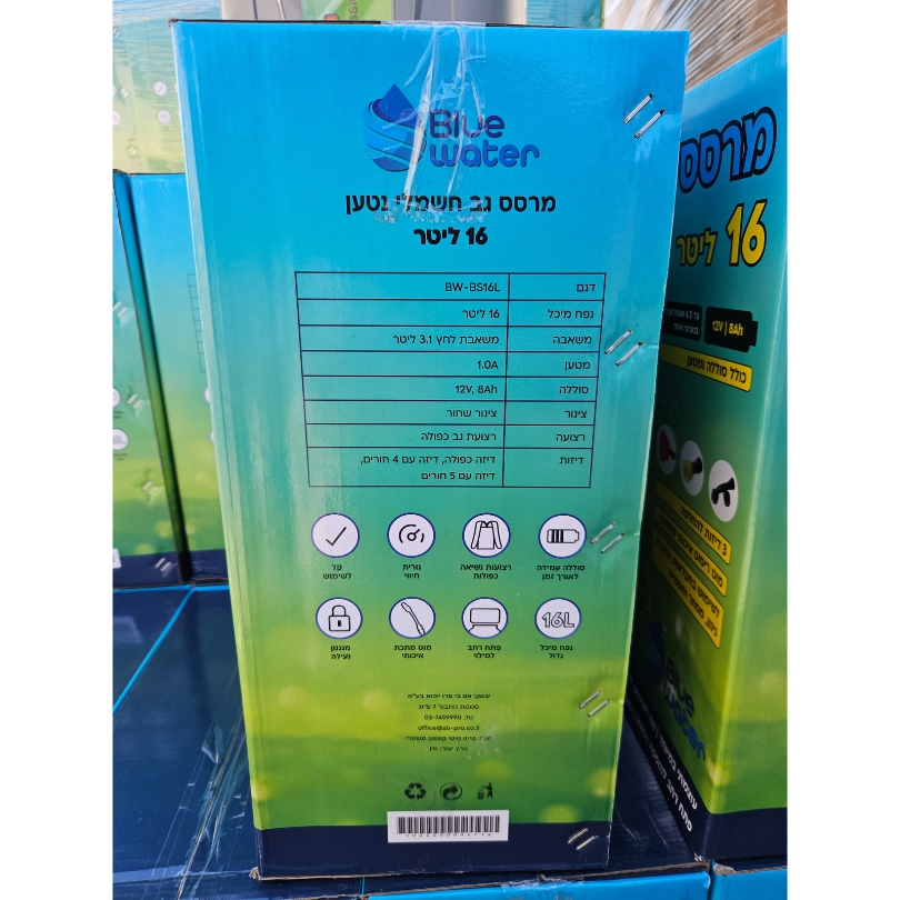 • מרסס גב חשמלי נטען 16 ליטר | BLUE WATER