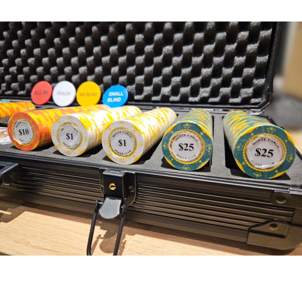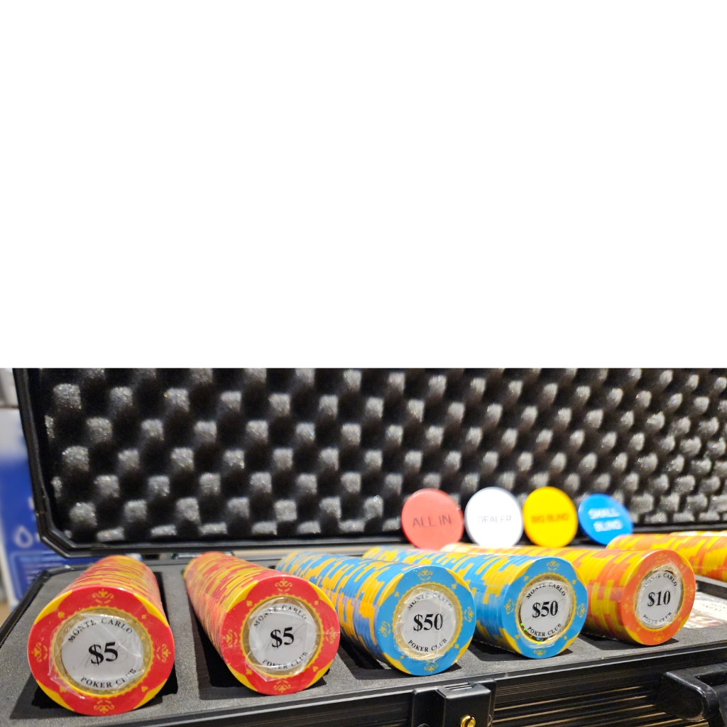סט פוקר מקצועי הכולל 500 צ'יפים איכותיים העשויים מחרס איכותי, עם ערכי דולרים מוטבעים על כל צ'יפ למשחק ברור, נוח ומסודר.