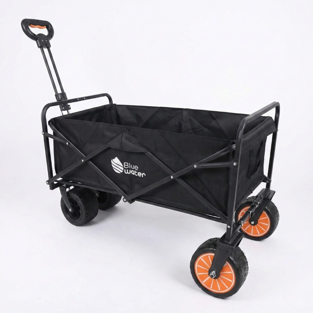 עגלת נשיאה ממונעת BW-eazylift-01 מבית Blue Water (עגלת קמפינג מתקפלת) מציעה פתרון חדשני, נוח ובטיחותי להובלת משאות.